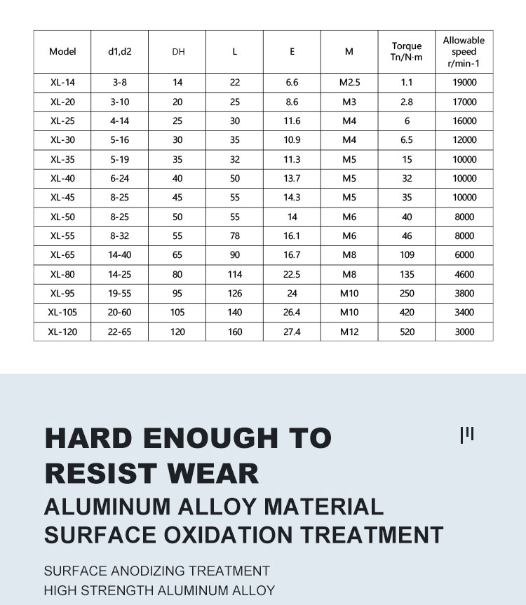 | Bore Diameter(d1~d2) | 6mm ~ 24mm |