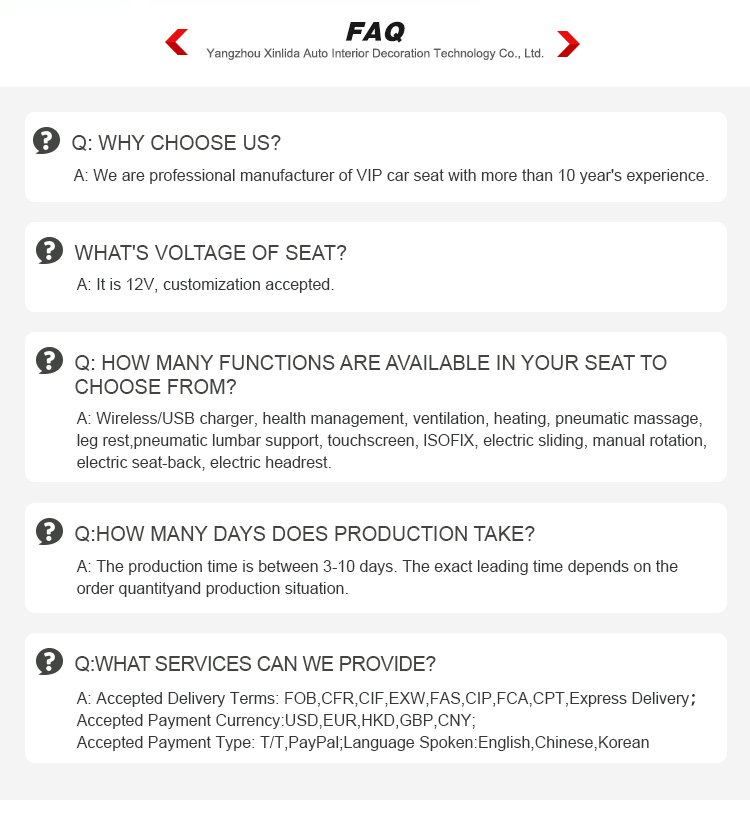 | Product name | Luxury VIP Car Seats With Pneumatic Massage Electric Sliding |